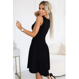 Dámské šaty 575-1 NUMOCO - černá barva - z elastického materiálu - široká ramínka - asymetrická sukně - zapínání vzadu na skrytý zip