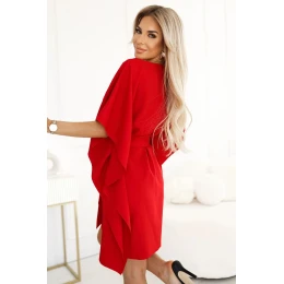 Dámské šaty 287-35 SOFIA NUMOCO - červená barva - volnějšího střihu "motýl" - tříčtvrteční rukávy - v pase na zavazování - délka ke kolenům