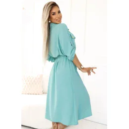 Dámské šaty 531-2 Numoco basic - mátová barva - košilový typ - zapínání na zlaté knoflíky - vázání v pase - zdobená kapsami - s límečkem