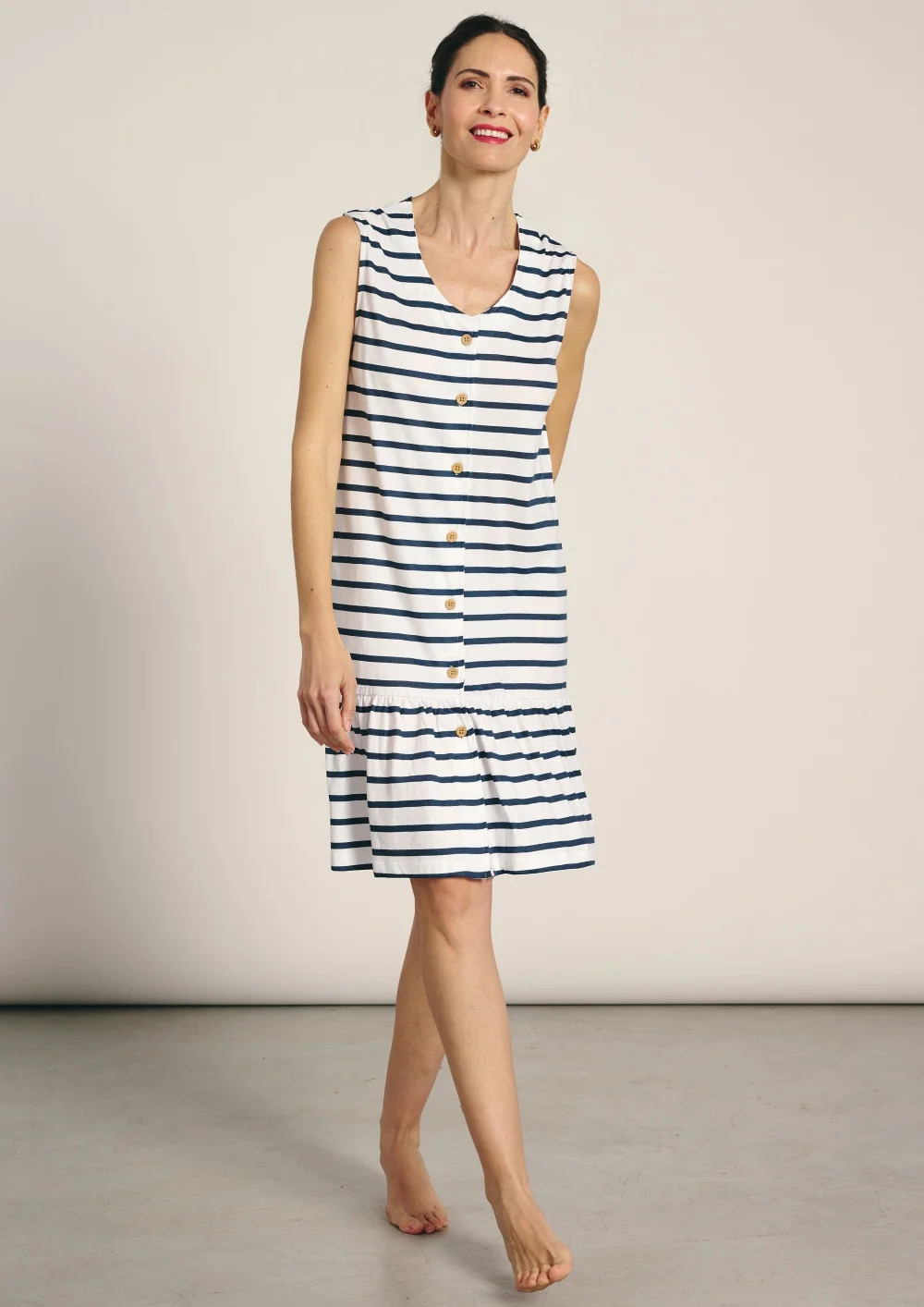 Dámské plážové šaty značky Muydemi. Šaty jsou vyrobeny z jemné bavlny, ideální pro horké letní dny. Šaty jsou volné, jednoduchého střihu s délkou nad kolena. Šaty jsou propínací a mají kulatý výstřih. Šaty mají široké ramínka.