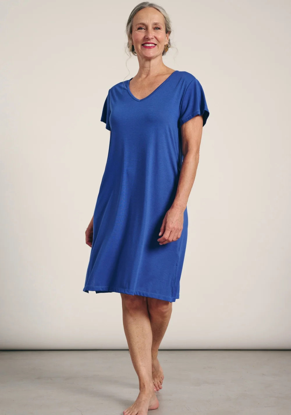 Dámské plážové šaty značky Muydemi. Šaty jsou vyrobeny z velice jemného polyesteru. Šaty jsou volné, jednoduchého střihu, s délkou nad kolena. Šaty mají krátký rukáv a výstřih do V.