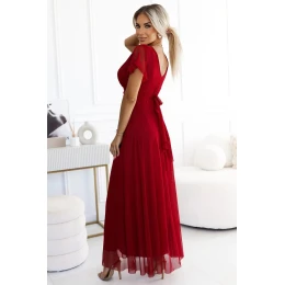 Dámské šaty 562-2 NASTIA Numoco basic - bordó barva - ze světle vínového tylu - vzdušné a lehké - srdíčkový výstřih - krátké rukávy - vyztužené košíčky - zavazování v pase