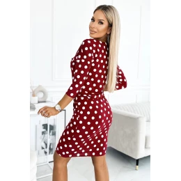 Dámské šaty 13-164 NUMOCO - bordó barva - tříčtvrteční rukávy - šaty mají volnější střih - v pase je v tunýlku vložena širší gumička a šňůrka se stříbrnými korálky - délka nad kolena (v závislosti na výšce postavy)