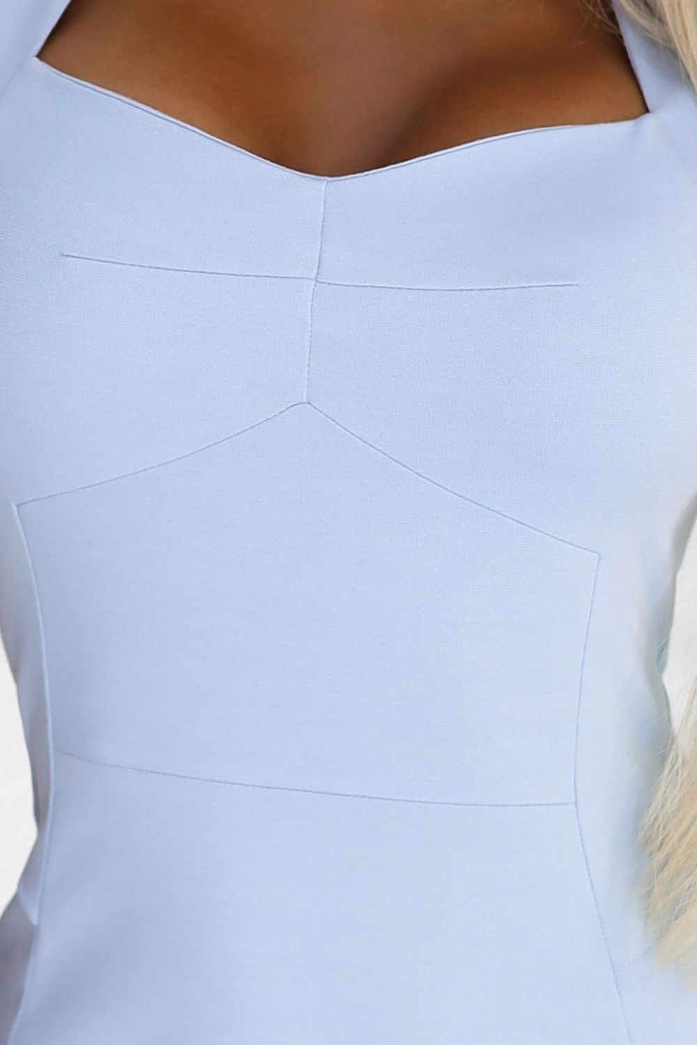Dámské šaty 318-8 NUMOCO - světle modrá barva - krásně řešený dekolt - krátké rukávy - délka sukně ke kolenům - střih zvýrazňující ženskou postavu