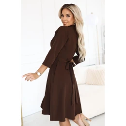 Dámské šaty 286-9 SANDY NUMOCO - čokoládová barva - košilové šaty - zapínání na knoflíky - s tříčtvrtečními rukávy - z příjemného málo elastického materiálu na dotek - délka ke kolenům