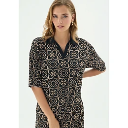 Elegantní šaty s límečkem představují nadčasový kousek, který spojuje klasický styl s moderním pohodlím. Volnější rukávy sahající po lokty dodávají modelu lehkost a vzdušnost, zatímco lichotivá délka do poloviny lýtek působí velmi ženským a sofistikovaným dojmem. Šaty jsou navrženy tak, aby poskytovaly maximální komfort při nošení a zároveň krásně zvýraznily siluetu. Díky svému univerzálnímu střihu se hodí jak do práce, tak volný čas. Límeček dodává celkovému vzhledu upravený a elegantní nádech, který snadno doplníš oblíbenými doplňky – od jednoduchých balerín až po podpatky.