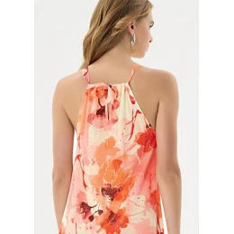 Dámské maxi šaty s odhalenými rameny jsou ideálním kouskem pro elegantní letní vzhled. Lehký materiál zajišťuje pohodlí a vzdušnost, zatímco velký volán u spodního lemu dodává šatům jemný pohyb a romantický nádech. Šaty jsou zdobené výrazným potiskem velkých makových květů, který přitahuje pozornost a dodává modelu hravý, ženský charakter. Díky svému střihu a délce maxi se hodí jak na denní nošení, tak na slavnostní příležitosti.