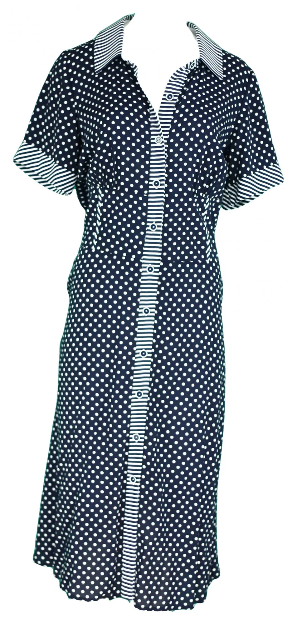 Produkt Dámské šaty model 7548641 - Gemini prodáváme v těchto velikostech: 42a barvách modrá - puntík1210003518801
