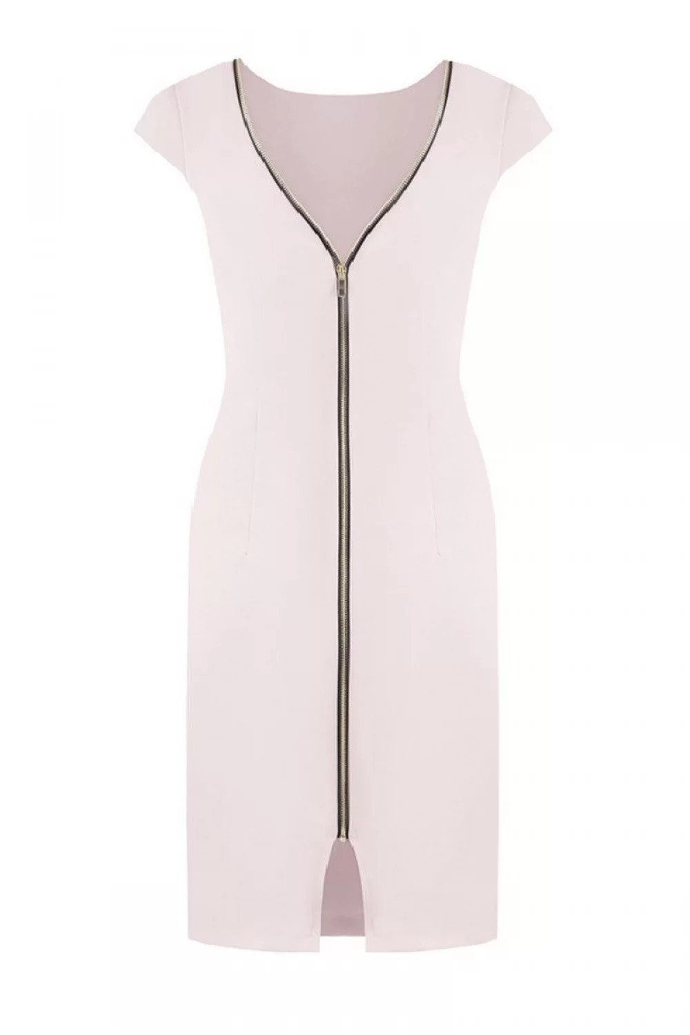 Šaty z měkkého úpletu. Jednoduché a klasické, ale s drápkem. Elegantní zip ve zlaté barvě na zadní straně dělá model jedinečným. Jemné záševky maskují nedokonalosti postavy a zároveň ji zdůrazňují.
