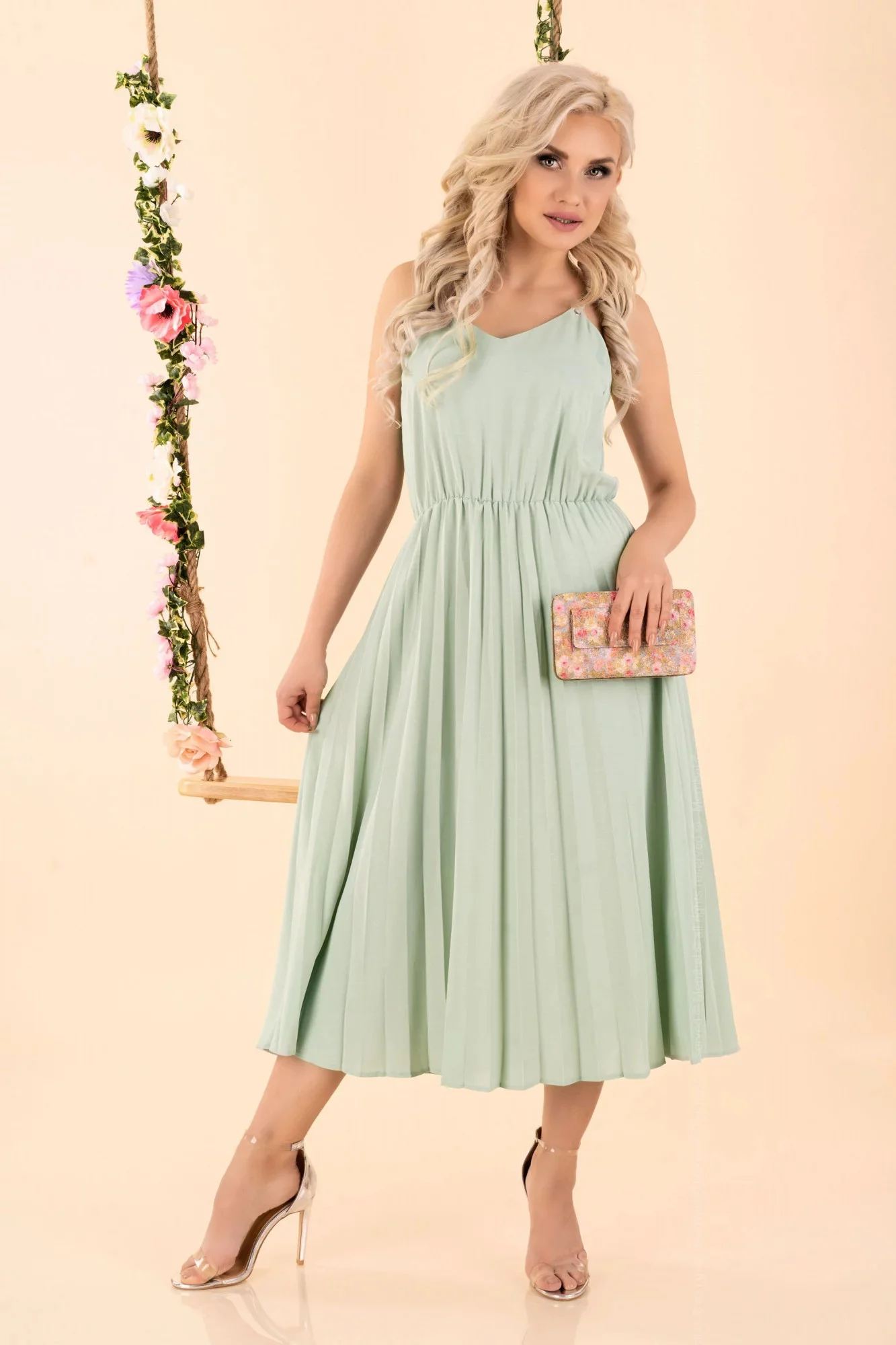 Produkt Dámské šaty model P43929 - Merribel prodáváme v těchto velikostech: S, M, XLa barvách mint5907621612320, 5907621612337, 5907621612351
