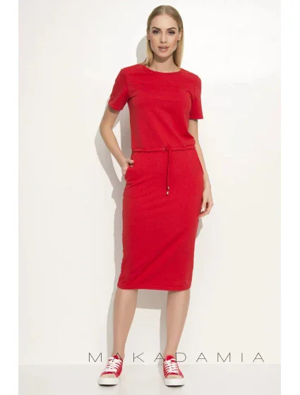 Dámské šaty na denní nošení se zavazováním v pase červené - Červená - Makadamia