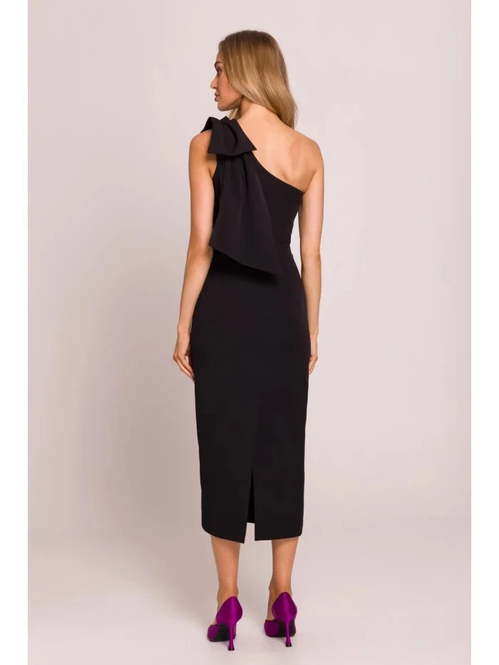 Dámské šaty na jedno rameno s mašlí M847 černé - Moe