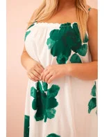 Tato dámská šaty na tenkých ramínkách jsou ztělesněním letního stylu a pohodlí. Vyrobeny ze 100% lehké a prodyšné viskózy, jsou ideální na horké dny. Romantický květinový vzor a jemný volánek na spodním lemu dodávají šatům dívčí kouzlo a volný střih zajišťuje plnou volnost pohybu.