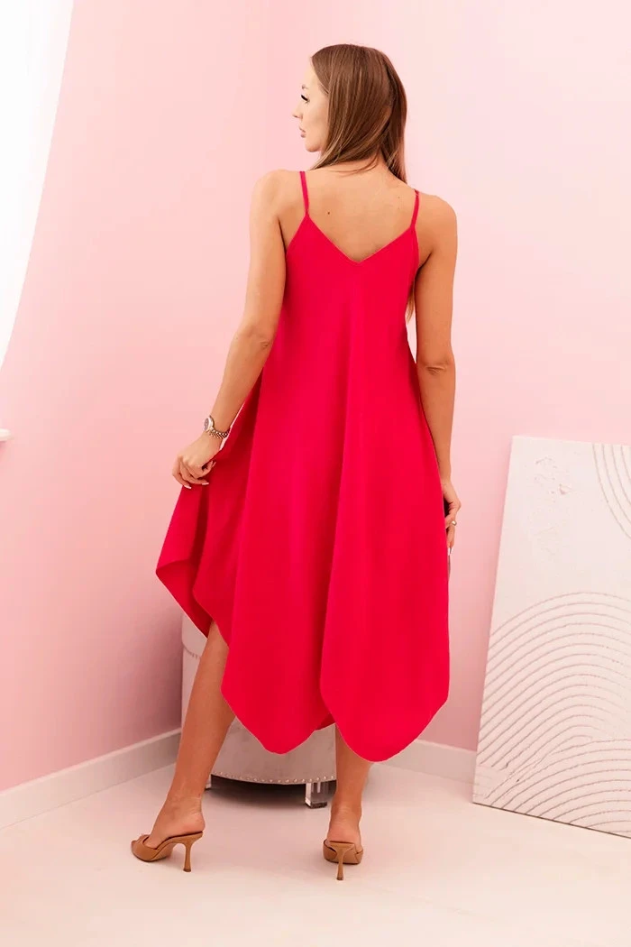 Dámské šaty na ramínkách rozšířené s asymetrickým lemem fuchsie