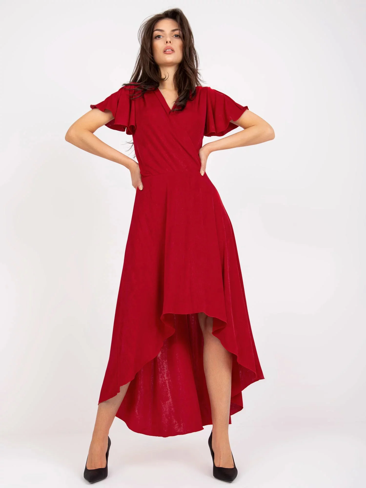 Modelka má na sobě velikost 36. Rozměry modelky: výška 173 cm, prsa 85 cm, pas 62 cm, boky 95 cm.
