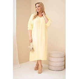 Dámské šaty plus size bavlněné mušelínové s výstřihem do V žlutá