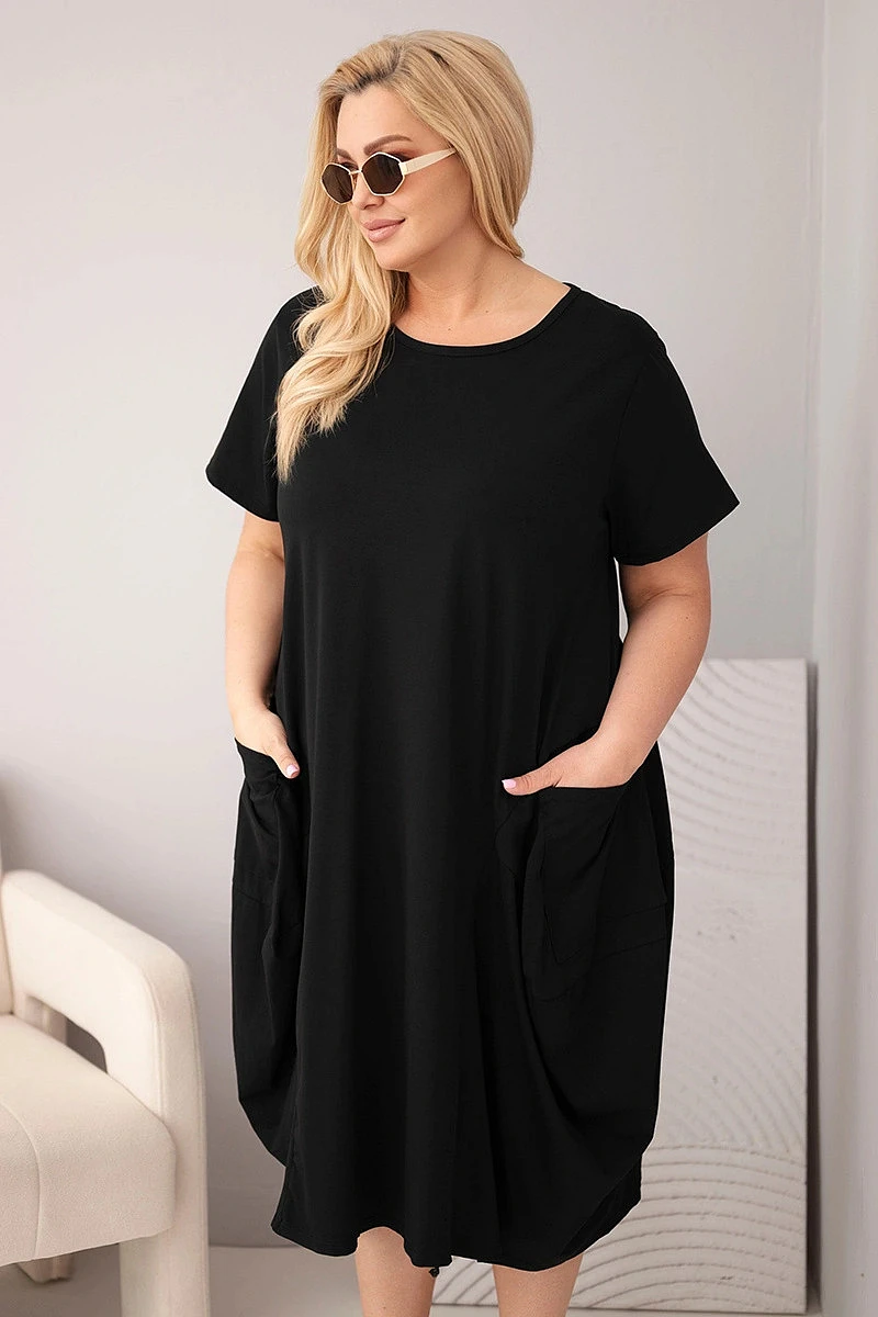 Dámské šaty Plus Size bavlněné s kapsami černá