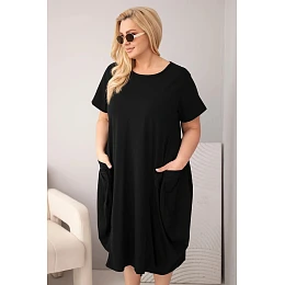 Moderní dámské šaty plus size s volným oversize střihem jsou ideální volbou pro ženy, které si cení pohodlí a módního vzhledu v každodenních stylingech. Minimalistický design v kombinaci s funkčními detaily zajišťuje, že tento model bude skvěle fungovat jak na běžné nošení, tak při neformálních příležitostech. Šaty mají krátký rukáv a klasický kulatý výstřih, což jim dodává univerzální charakter.