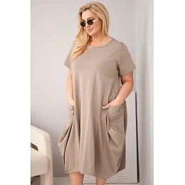 Moderní dámské šaty plus size s volným oversize střihem jsou ideální volbou pro ženy, které si cení pohodlí a módního vzhledu v každodenních stylingech. Minimalistický design v kombinaci s funkčními detaily zajišťuje, že tento model bude skvěle fungovat jak na běžné nošení, tak při neformálních příležitostech. Šaty mají krátký rukáv a klasický kulatý výstřih, což jim dodává univerzální charakter.