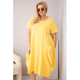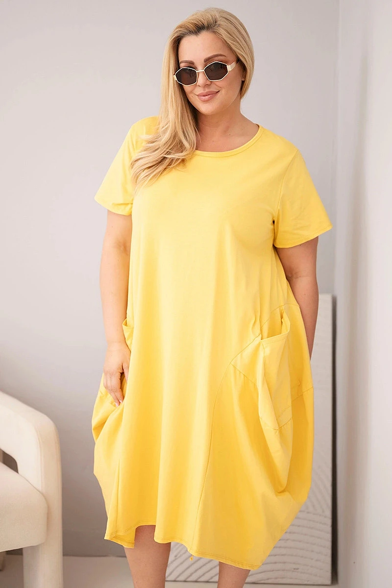 Dámské šaty Plus Size bavlněné s kapsami žlutá