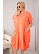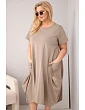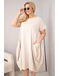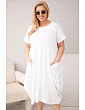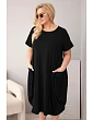 Moderní dámské šaty plus size s volným oversize střihem jsou ideální volbou pro ženy, které si cení pohodlí a módního vzhledu v každodenních stylingech. Minimalistický design v kombinaci s funkčními detaily zajišťuje, že tento model bude skvěle fungovat jak na běžné nošení, tak při neformálních příležitostech. Šaty mají krátký rukáv a klasický kulatý výstřih, což jim dodává univerzální charakter.