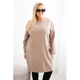 Dámské šaty Plus Size máslové s kapsou a rukávem 3/4 camelový