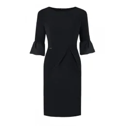 Jednoduché šaty s 3/4 rukávy zakončené volánem. Šaty mají zapínání na zip.