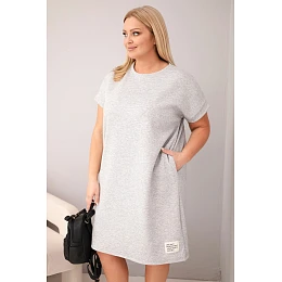 Dámské šaty Plus Size s krátkým rukávem a kapsami šedý melír