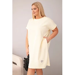 • Dámské šaty Plus Size s krátkým rukávem a kapsami žlutá
