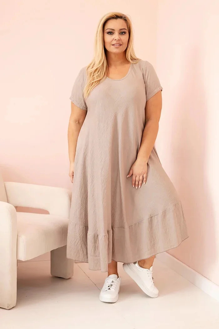 Dámské šaty plus size s krátkým rukávem a volánem z lehké viskózy fango
