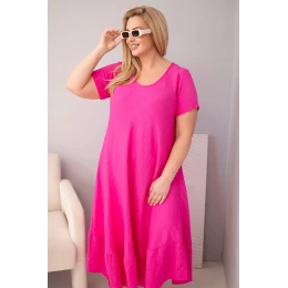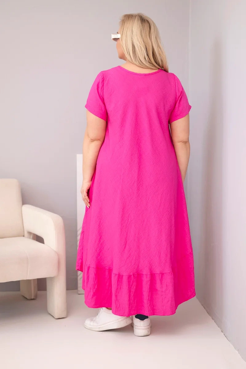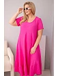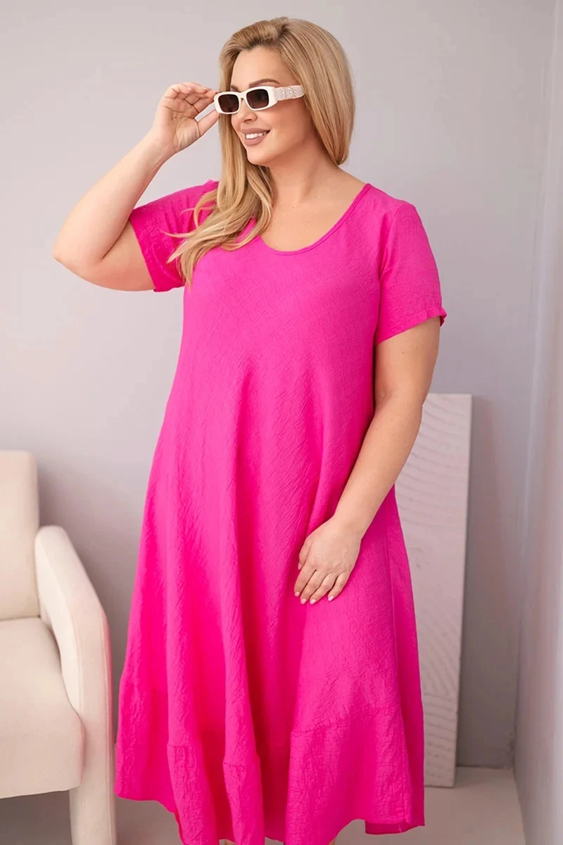 Dámské šaty plus size s krátkým rukávem a volánem z lehké viskózy fuchsiová