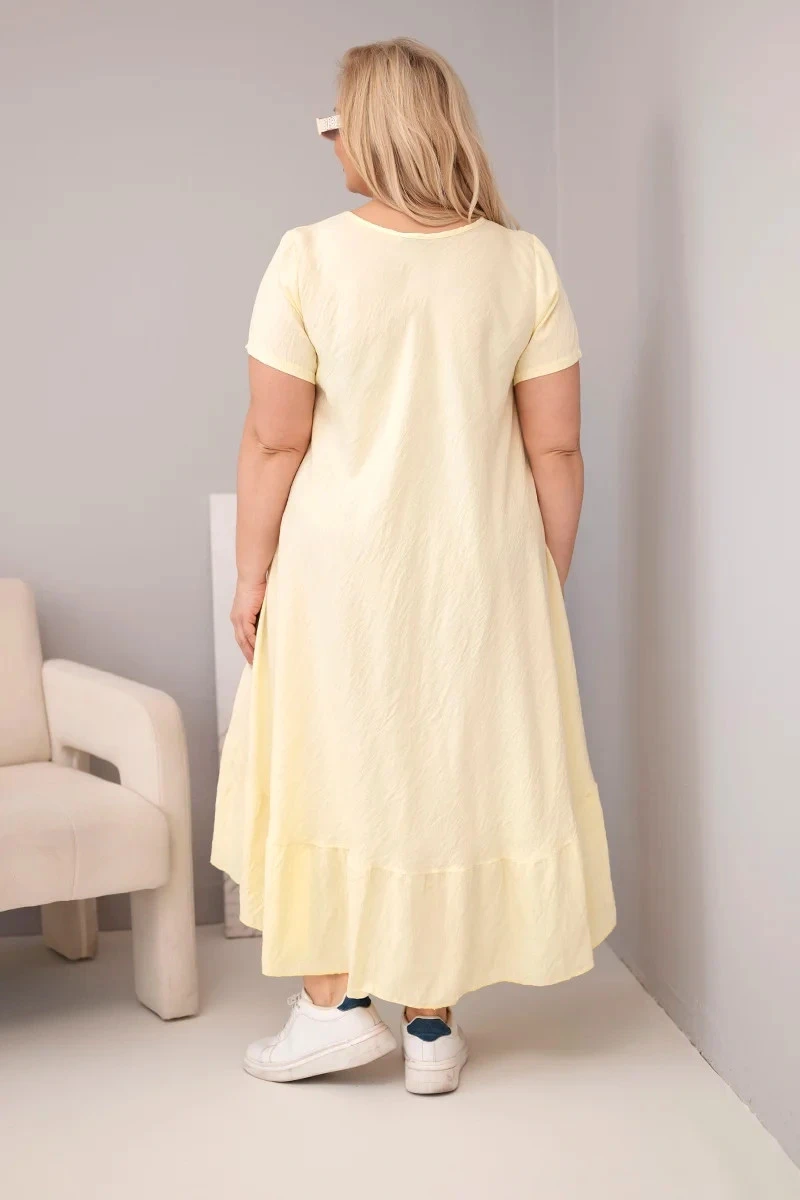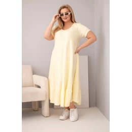 Dámské šaty plus size s krátkým rukávem a volánem z lehké viskózy žlutá