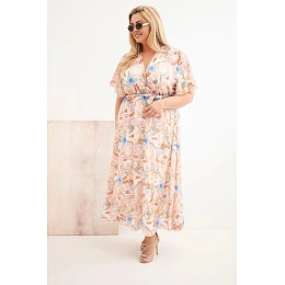 Dámské šaty Plus Size s květinami se zavazováním béžová