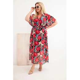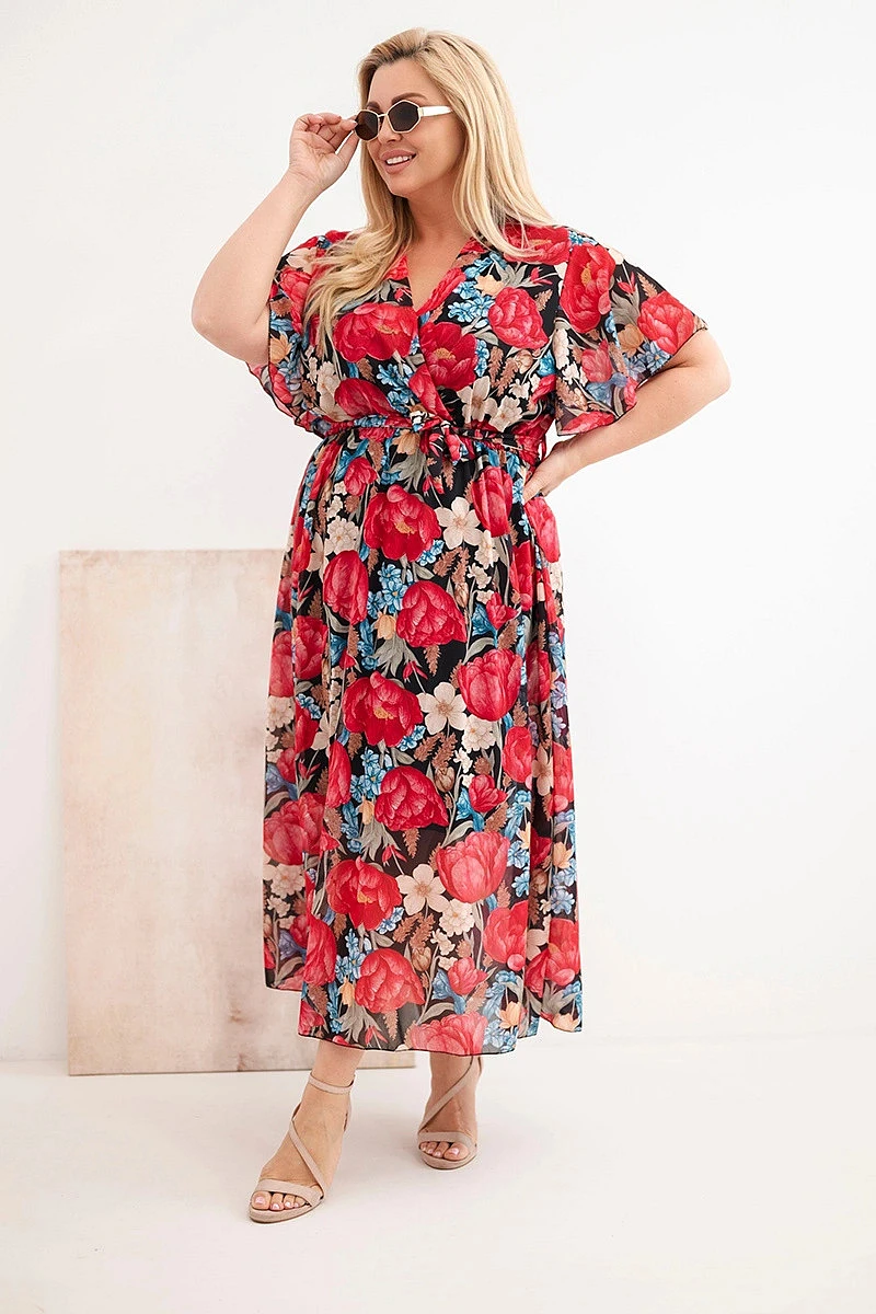 Stylové dámské šaty plus size s efektním květinovým vzorem jsou vynikající volbou pro ženy, které si cení pohodlí a ženského vzhledu. Model s volnějším, lehce rozšířeným střihem se krásně přizpůsobí postavě, zajišťuje volnost pohybu a pohodlí při nošení po celý den. Klasický kulatý výstřih dodává šatům univerzální charakter, díky čemuž jsou vhodné jak do běžného dne, tak na výjimečné příležitosti.