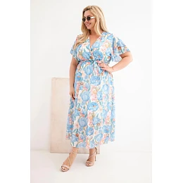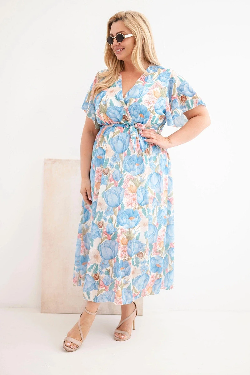 Dámské šaty Plus Size s květinovým vzorem se zavazováním modrá