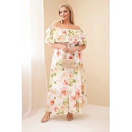 Efektní dámské šaty Plus Size v hispánském stylu jsou vynikající volbou pro ženy, které si přejí spojit pohodlí s módním vzhledem. Model okouzluje krásným květinovým vzorem a širokým volánem u výstřihu, který jemně odhaluje ramena a dodává celku výjimečnou lehkost. Vzdušný střih způsobuje, že se šaty volně přizpůsobují postavě, zajišťují komfort nošení a maskují drobné nedostatky figury.