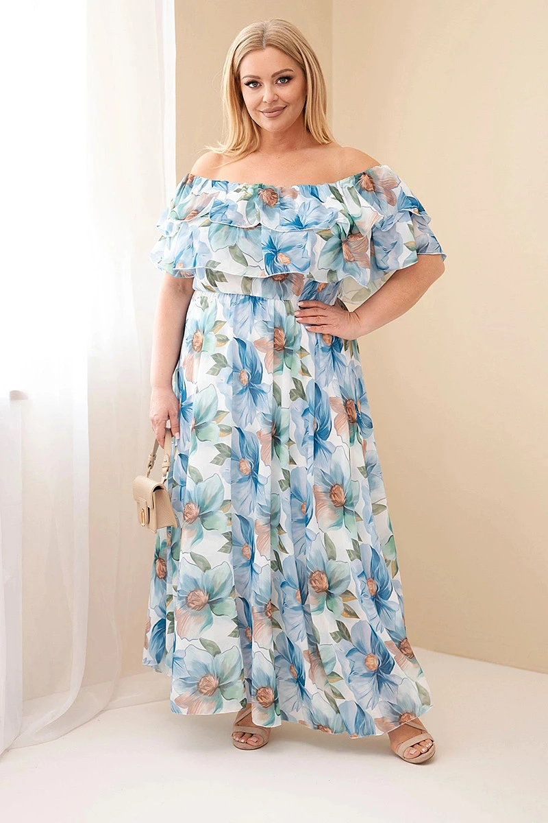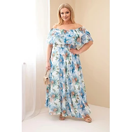 • Dámské šaty Plus Size s volánem, s odhalenými rameny a elastickým pasem maxi modrá