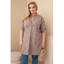 • Dámské šaty Plus Size s vyšíváním a ohrnutým rukávem fango