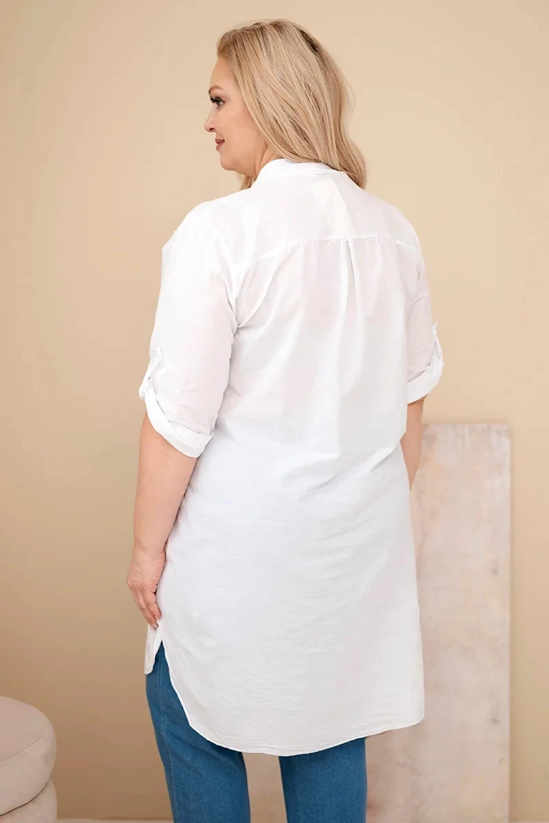• Dámské šaty Plus Size s výšivkou a ohrnovacími rukávy bílá