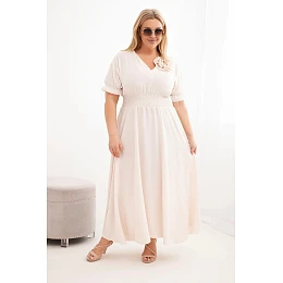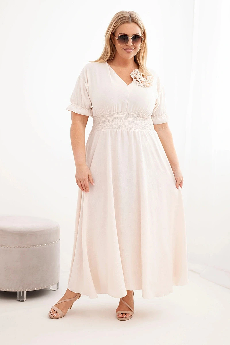 Šaty mají elastický, nařasený pas, který se dokonale přizpůsobí siluetě, zvýrazní její přednosti a zajistí pohodlí po celý den. Volnější spodní díl způsobuje, že model se při pohybu krásně splývá, zaručujíc volnost a komfort nošení. Midi délka činí šaty univerzální volbou – hodí se jak na denní nošení, do práce, tak na setkání nebo slavnostní příležitosti.