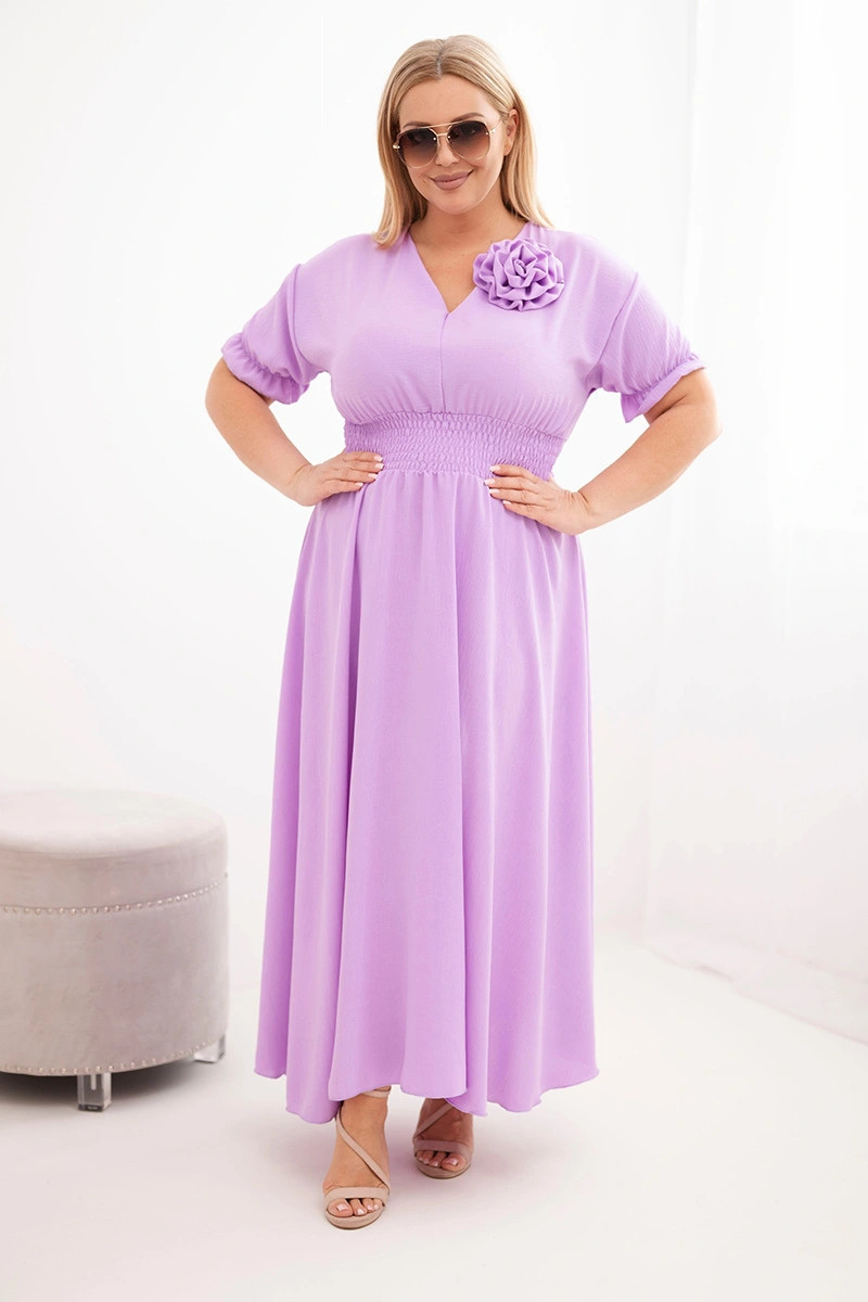 3. Dámské šaty Plus Size s výstřihem do V a řaseným pasem světle fialová
