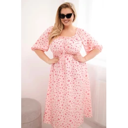 • Dámské šaty Plus Size s výstřihem na tkaničky a elastickým pasem cukrová růžová