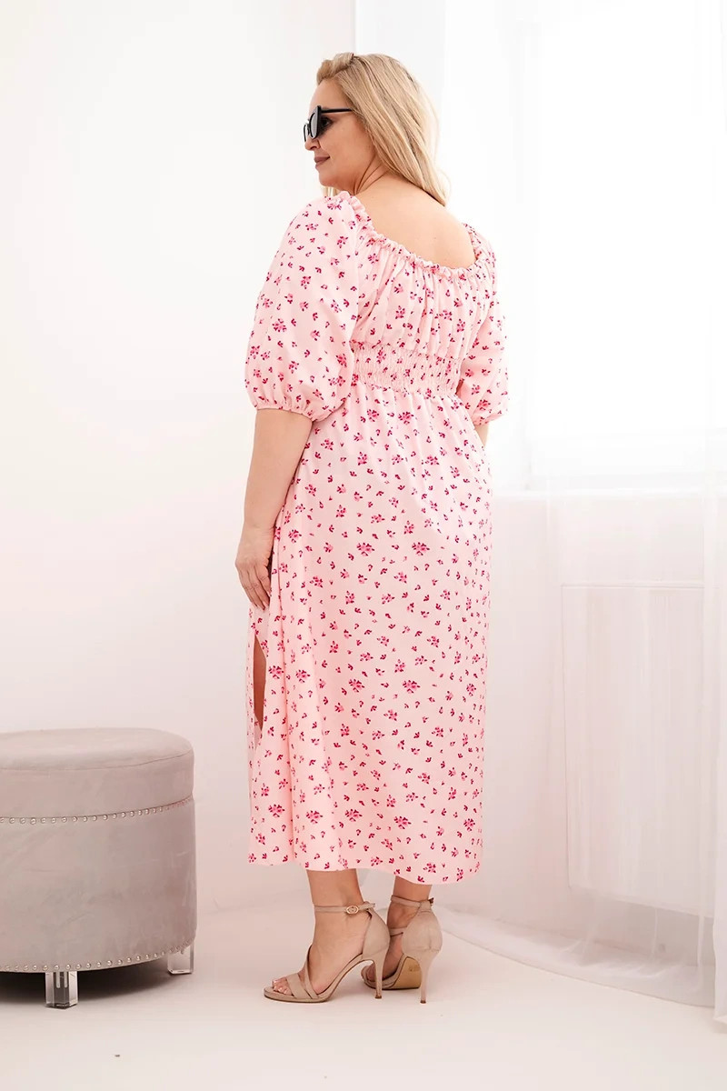 1. Dámské šaty Plus Size s výstřihem na tkaničky a elastickým pasem model 21959146 růžová - K-Fashion