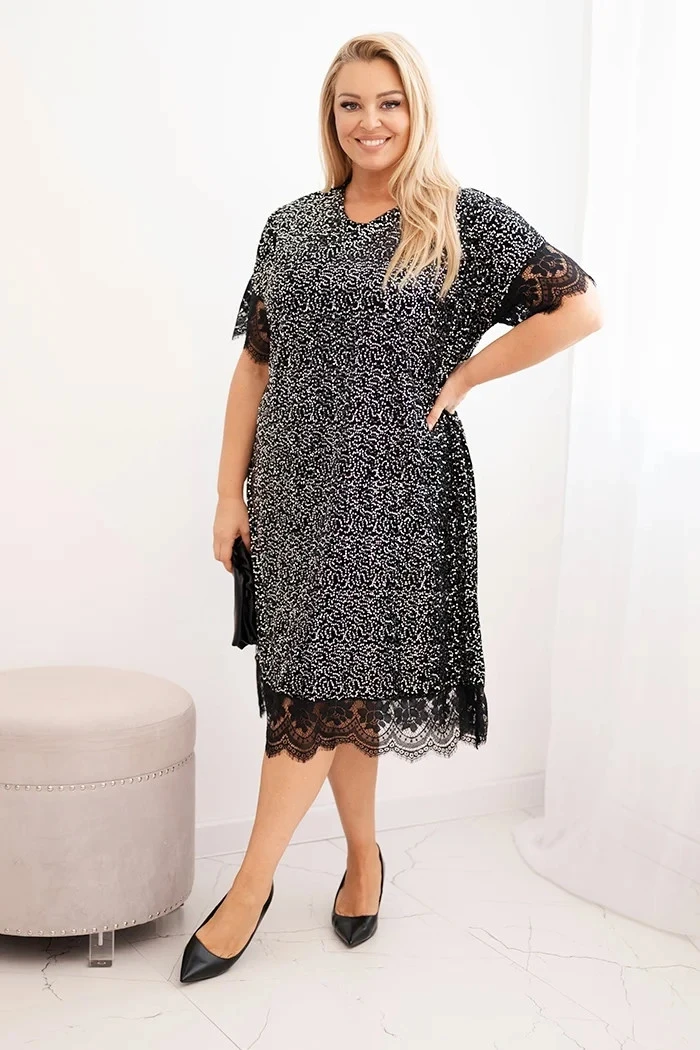 3. Dámské šaty Plus Size se a krajkovým černý + stříbrný model 21486186 - K-Fashion