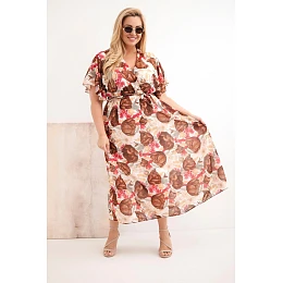 Dámské šaty Plus Size v květinovém vzoru s vázáním hnědá