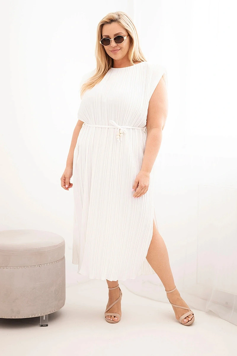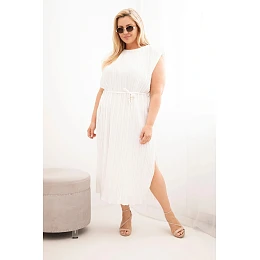 Dámské šaty Plus Size viskózové plisované s vázáním ecru