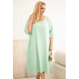 Dámské šaty Plus Size viskózové s kapsami krátkým rukávem tmavě mátová