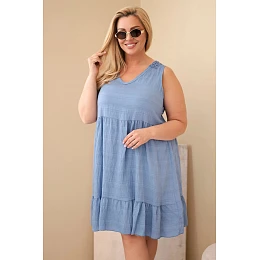 Dámské šaty Plus Size viskózové s krajkou bez rukávů džínové