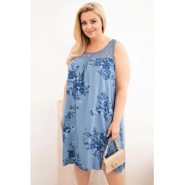Dámské šaty Plus Size viskózové s květinami a krajkovým vrškem džínová