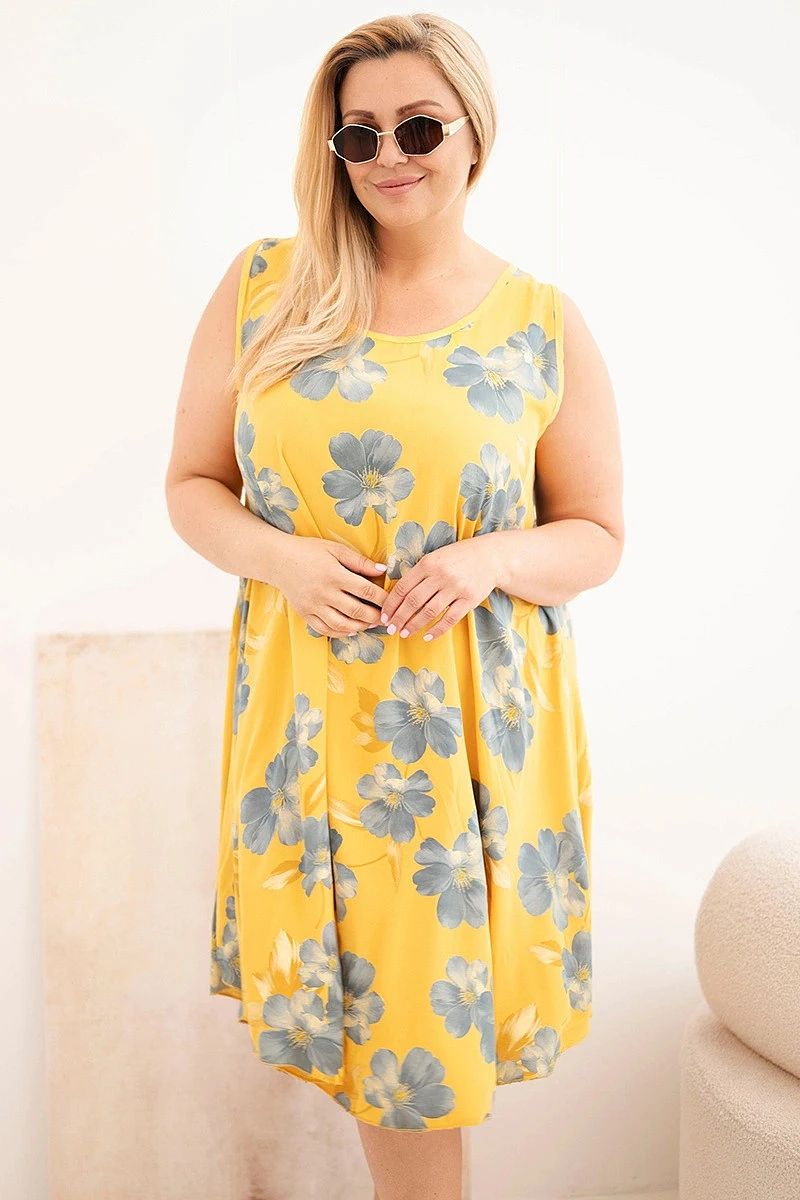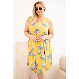 Dámské šaty Plus Size viskózové s květinovým vzorem na ramínkách hořčicová